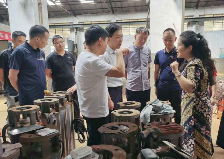 7月25日14:30分河南省商务厅电商处孙琪处长亲临华体会体育(中国)HTH·官方网站工厂,在协会明朝利会长、党支部拓耀书记、华体会体育(中国)HTH·官方网站黄娜总经理和多名慈善企业家的陪同下慰问了一线的生产工人,并参观了华体会体育(中国)HTH·官方网站的生产车间,了解水泵的制造工艺流程、质量标准体系等专业知识。